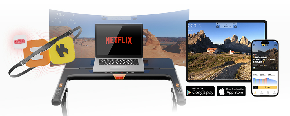Благодарение на Bluetooth можете да свържете Бягаща пътека inSPORTline ZenRun 20 с мобилните приложения Kinomap и Zwift, в които можете да наблюдавате дългосрочните тенденции на вашата тренировка, да опитате виртуални състезания с други потребители или да преминете по предварително зададени маршрути, придружени от видео.