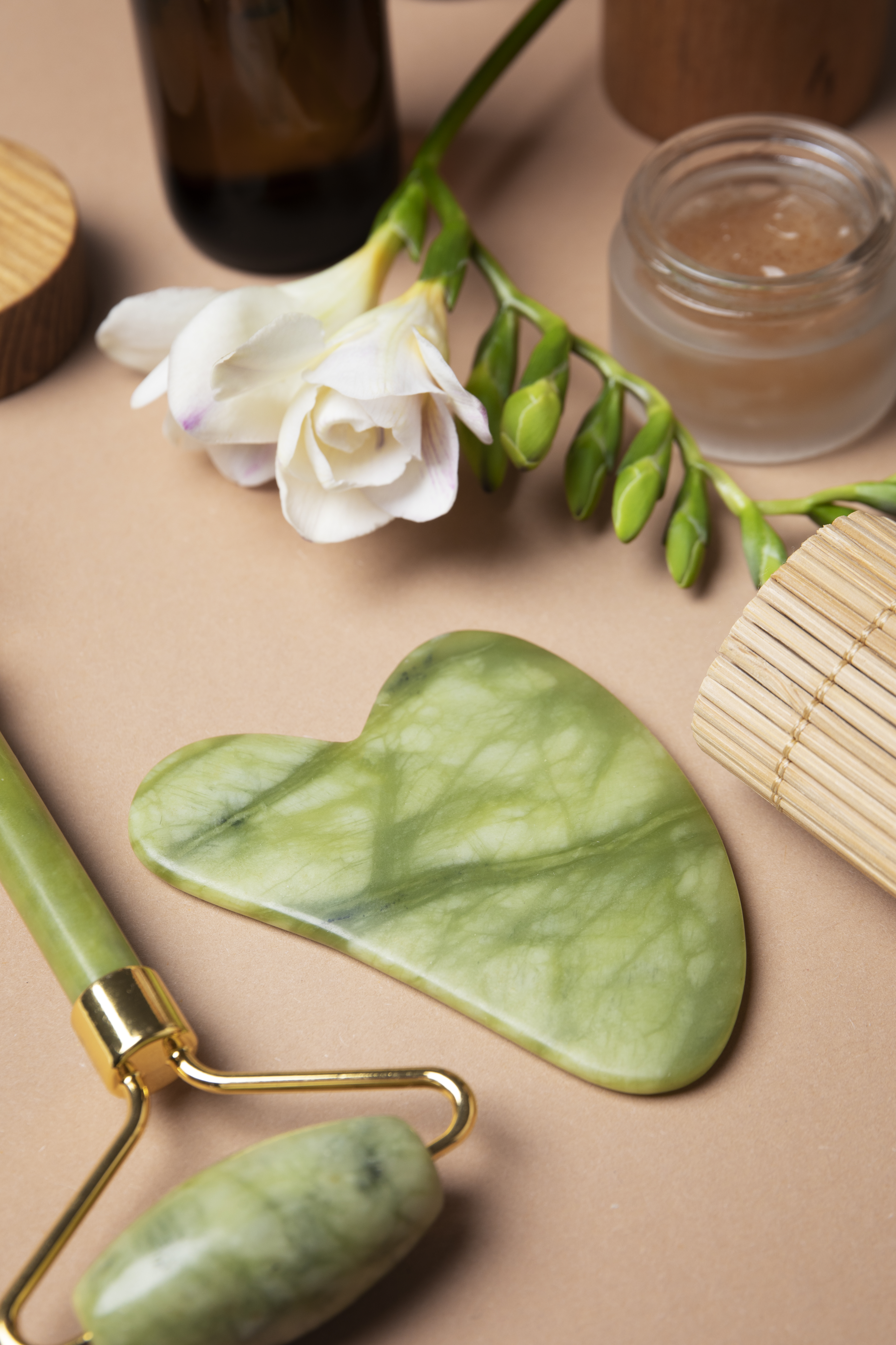 За лице често се използва форма „сърце“ от нефрит или розов кварц; за тяло — по-големи плочи или метални инструменти.